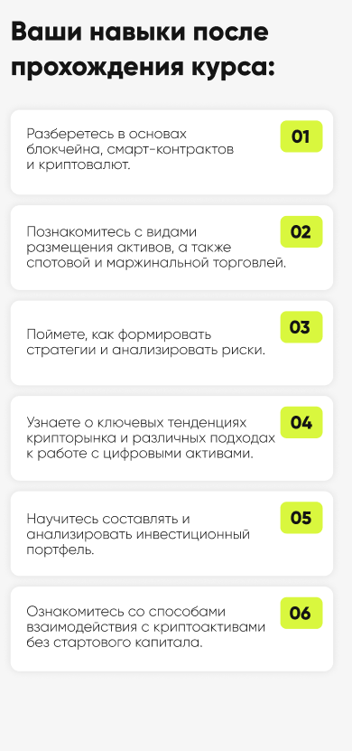 - Делится знаниями с учениками и помогает разбираться в основах криптовалют.